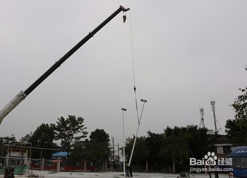 5.立灯杆,可用吊机或人工将灯杆吊起到预埋件安装位置固定